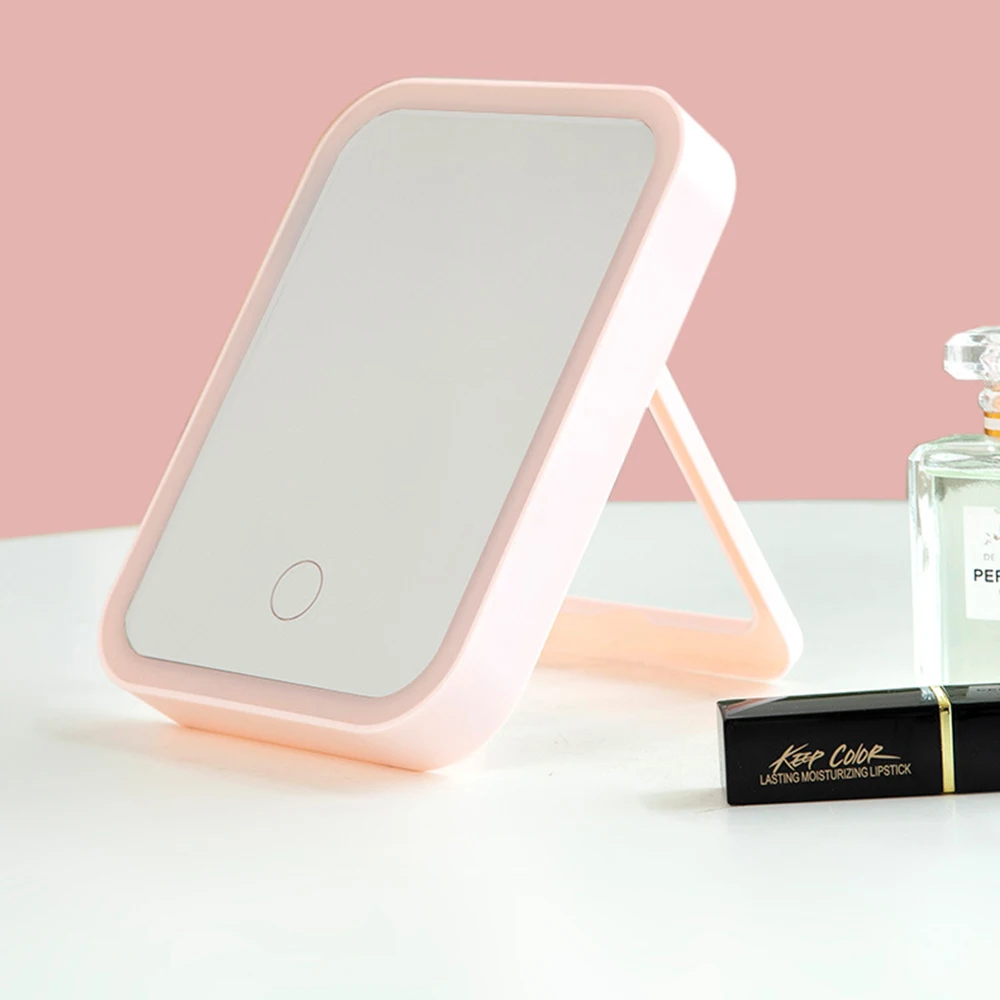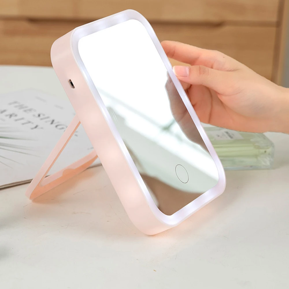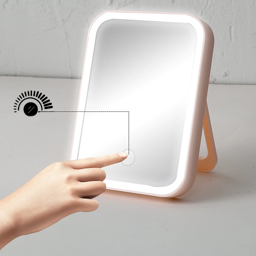 desktop led makeup mirror with adjustable touch screen and folding design